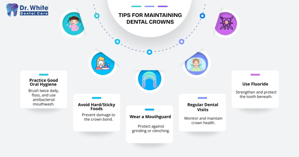- Wear a Mouthguard : If you grind or clench your teeth, wearing a custom mouthguard can protect your crowns and natural teeth from damage.